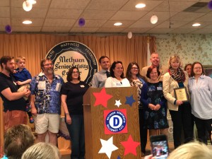 Great turnout at the 2018 Methuen Democratic Town Committee breakfast, where over 300 Democrats gathered to hear candidates speak, recognize Christine Metzmaekers as Democrat of the Year, and conduct a straw poll for some of the exciting races we have coming up later this year. Congrats to Christine, a great Democrat who really deserved the recognition. Thanks to our Chair Jessica Finocchiaro for all of her hard work in putting it together. Thanks to all the Committee members who worked so hard to make the breakfast a success. The poll results are below. Thanks to all the candidates who took the time to attend the breakfast and offer all of us some perspective on their candidacies.